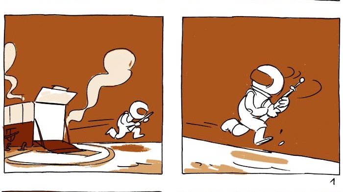 A comic about finding a piece of porcelain that was made during the Nazi-Regime in Germany and following its history. Text in German.