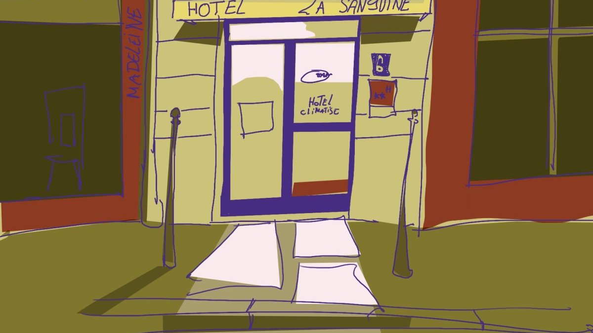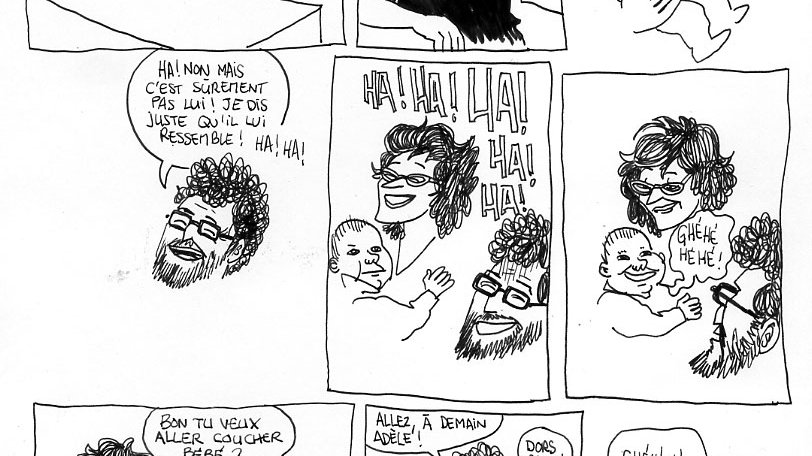 L’ambiance de travail était super studieuse. J’ai bien essayé deux ou trois blagues mais ceux qui avaient de la musique dans les oreilles n’ont rien entendu. Au début j’avais de l’avance alors je faisais le fanfaron. J’ai improvisé et dessiné directement au stylo. Quand je ratais, je masquais ça avec un coup de blanco. J’aurai peut-être dû travailler sur du A5 comme beaucoup (ne parlons pas ceux qui ont honteusement travaillé sur du A6). J’ai finalement terminé dans les toutes dernières minutes.