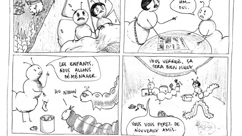 historiette improvisée case après case sur un petit format (A5). J’apporterai peut-être quelques modifications ultérieures à ce récit (…)