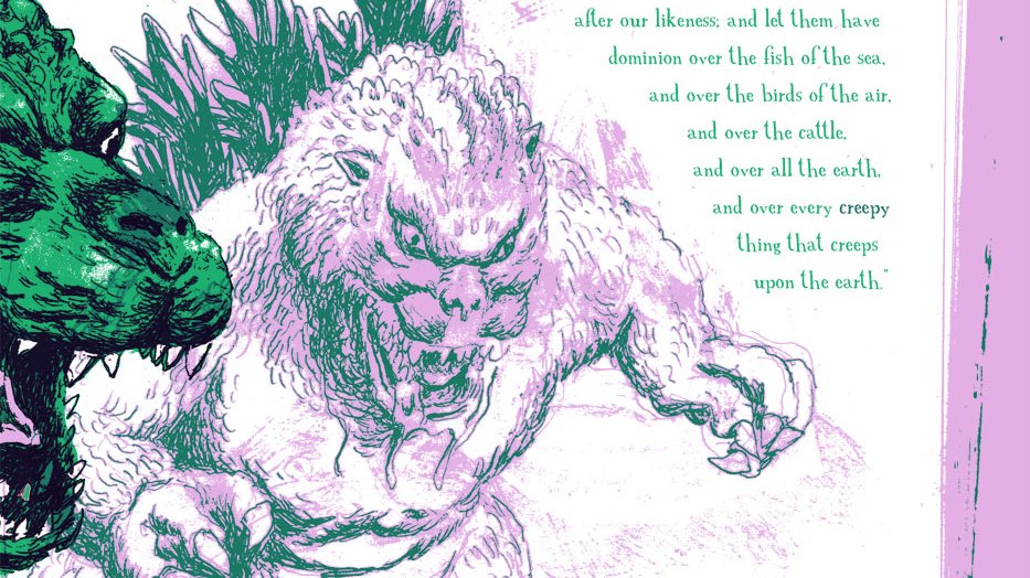 Then Godzilla said, "Let us make man in our image, after our likeness ; and let them have dominion over the fish of the sea, and over (…)