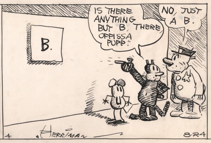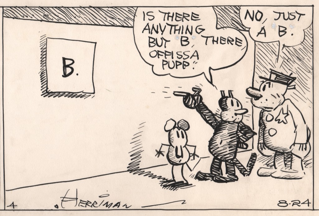 George Herriman est entré dans le domaine public depuis le début de l’année 2015. Pour fêter cet événement, un premier workshop a été organisé à Bruxelles début février lors du "Public domain day" organisé par Constant. Ce fut l’occasion d’autopsier le talent d’Herriman, et cela littéralement : avec un scalpel et de la colle. Stéphane Noël, Pascal Matthey, quelques autres auteurs de bande dessinée et un public enthousiaste se sont adonnés à quelques exercices de détournement.
