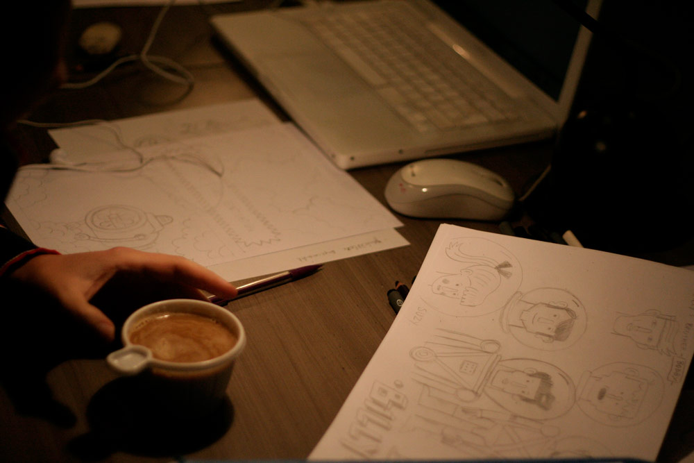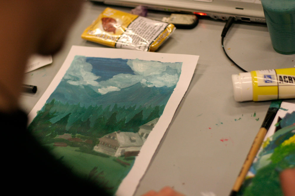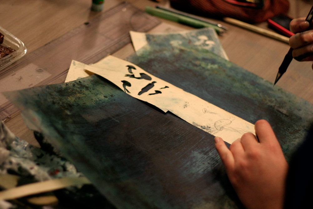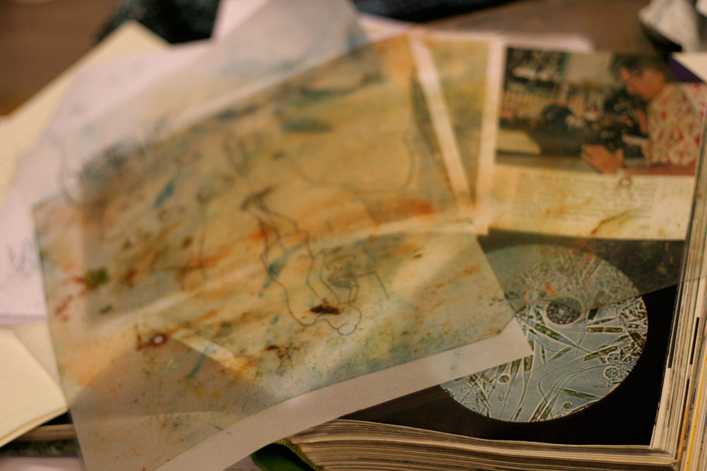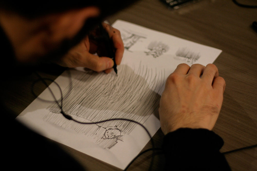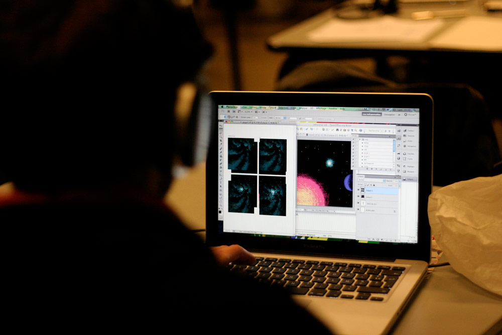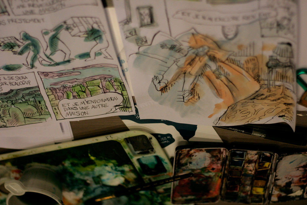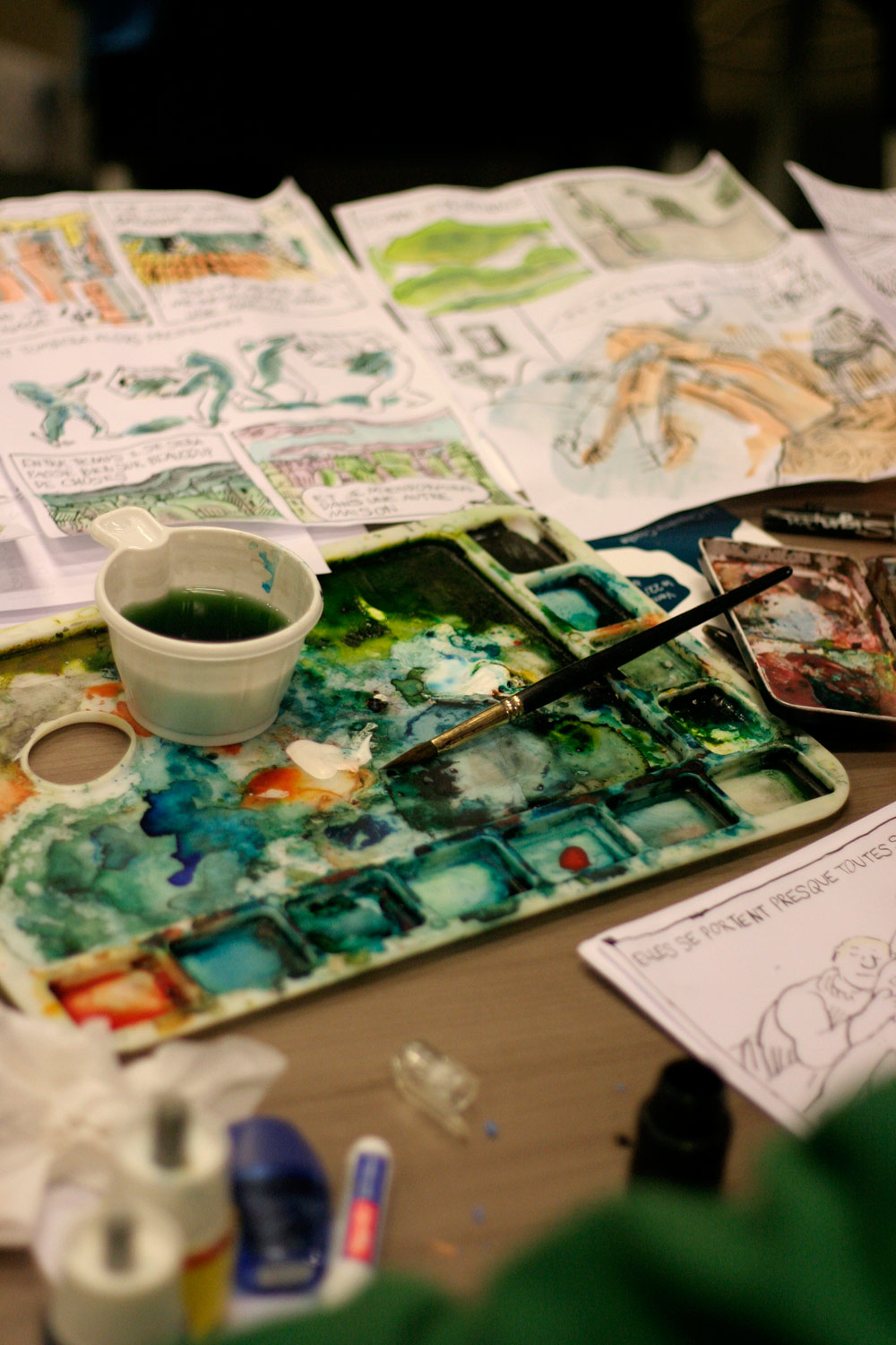 Un sentiment lorsqu’on passe dans la salle, c’est que les auteurs ont pris leur marques, les tables sont investies, les paquets de gâteaux ont été ouverts, les feuilles, les pots et les crayons sont étalés, la salle a pris vie ( mais toujours de manière studieuse...).