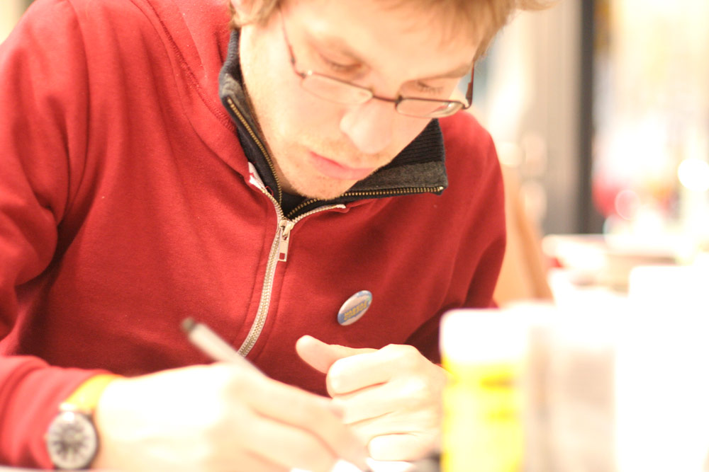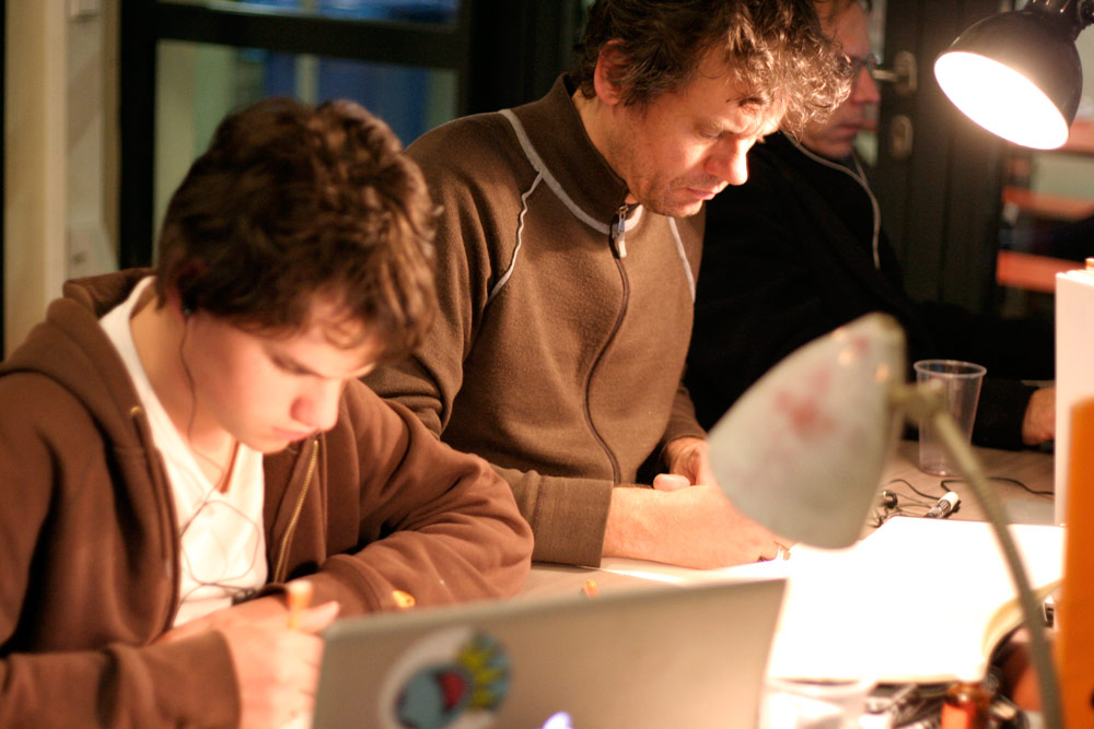 Certains commencent à finir le planches, d’autres commencent à vraiment fatiguer... Après 18h de dessin personne n’abandonne !
