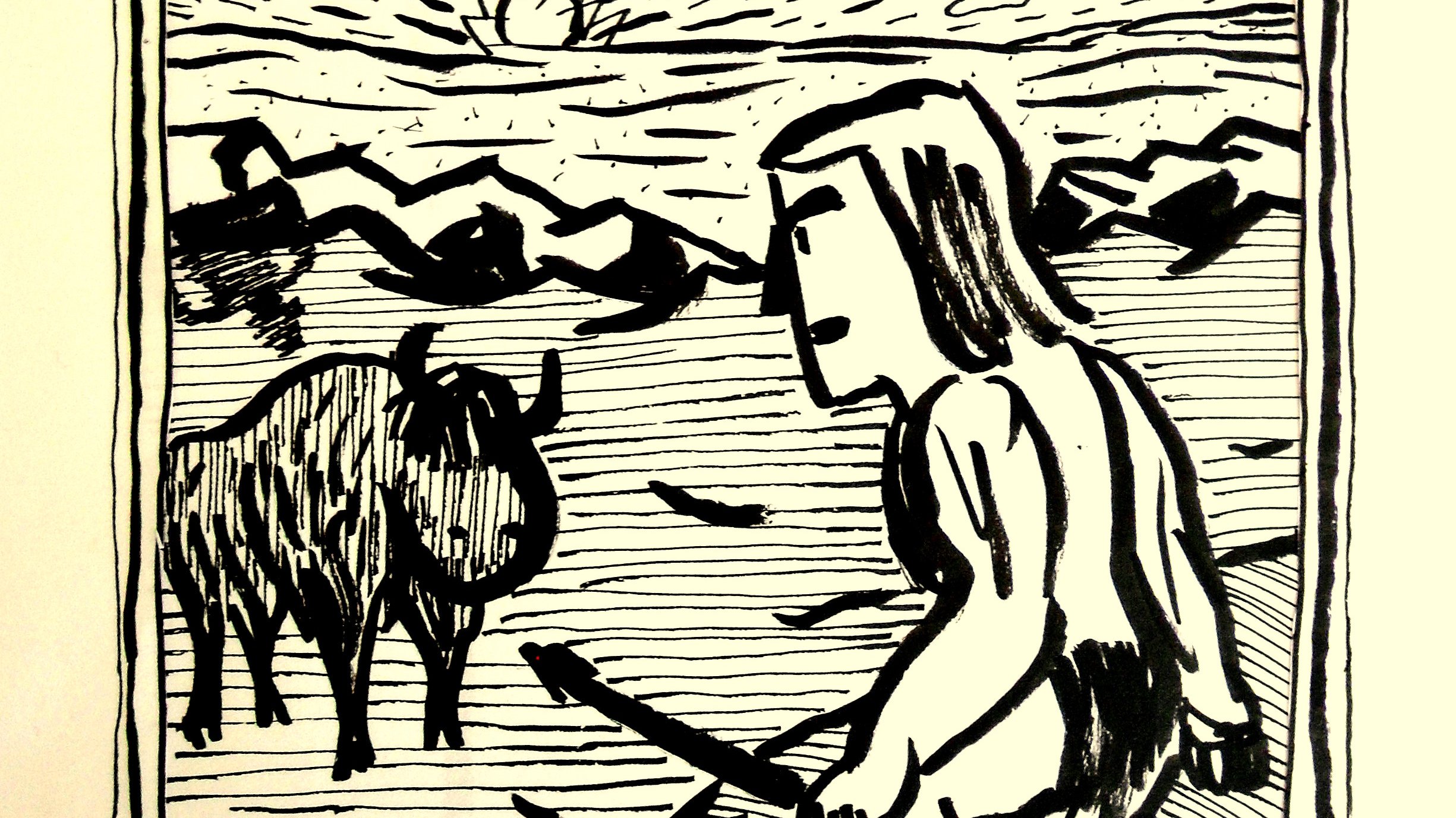 Cette fois-ci, l’éclair entre en scène ; Platon ne dessine pas ; Kanigou s’ennuie ; P’pa Thunder énonce des théories capitales. (Le tout scanné à l’appareil photo, avec mes pieds)
