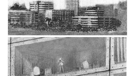De l’encre, de la peinture, des pastels, des collages, de la terre ; autant de techniques qui forment son vocabulaire. Cet univers prend pied sur ses souvenirs d’une enfance passée sur une île tropicale.